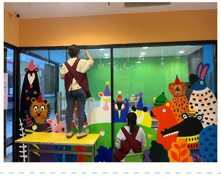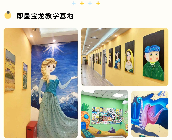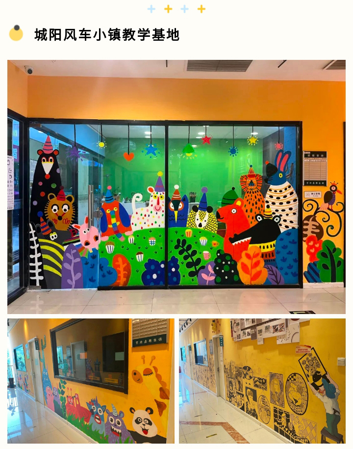 主題從名家名畫、自然動物、風土人文到學員們喜歡的動漫人物、故事繪本,涉獵范圍廣,開闊學員的眼界。而形式上也是豐富多彩,除了墻繪內容,結合多種新型材料,增加了更多立體、動感的設計。