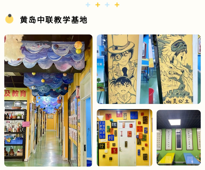黃島中聯(lián)校區(qū)走廊為星空主題,兩側為學員們喜愛的動漫人物,教室內墻面用大色塊重新涂色掛有教師范畫,加強校區(qū)書法氛圍,將書法與美術結合,增加文化氛圍。