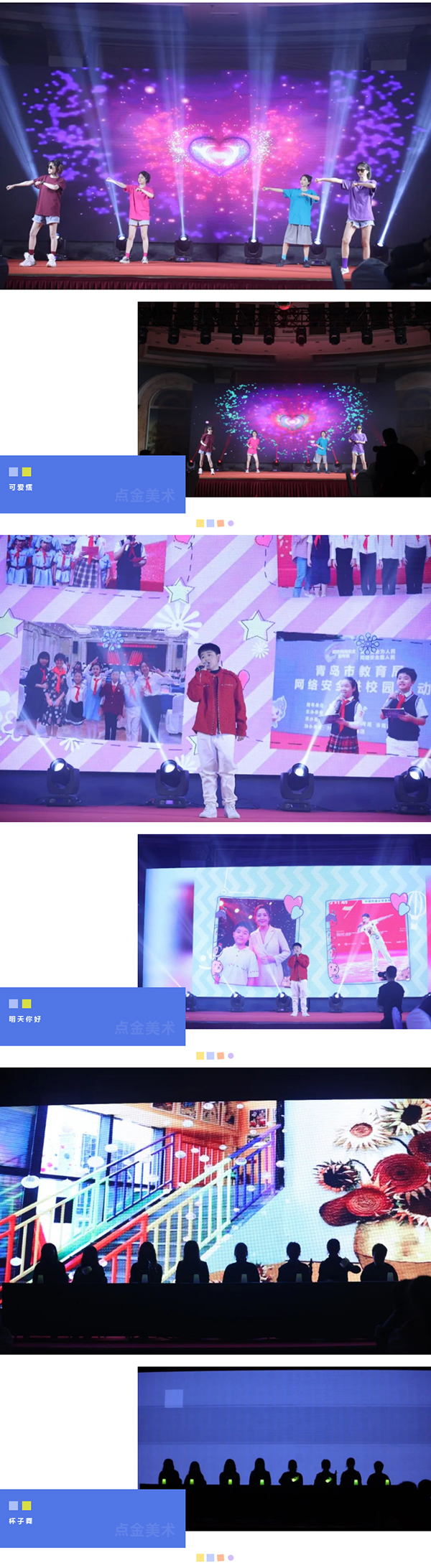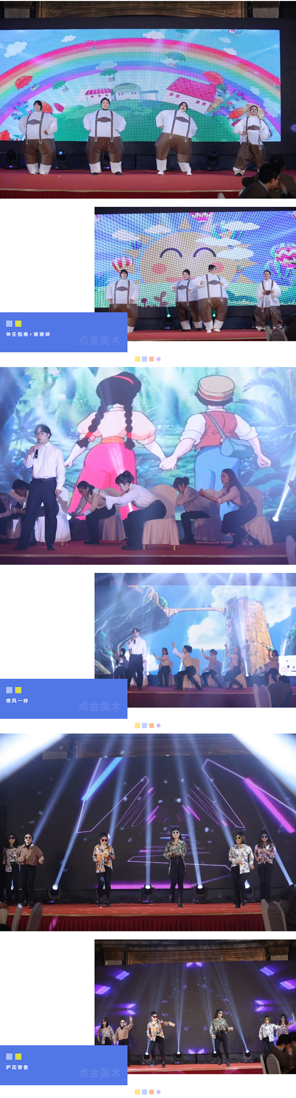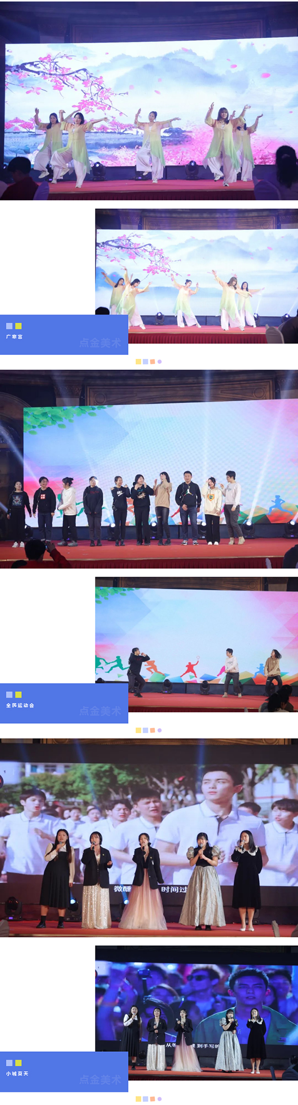 在這個充滿夢想的舞臺上,各位老師用他們最活潑、最有精氣神的一面,展示了點(diǎn)金美術(shù)蓬勃向上的青春活力,美好的時光總是短暫的,但是幸福的回憶總是美好的,愿這歡聲笑語,充滿溫情浪漫的時刻,永駐我們彼此心間。
