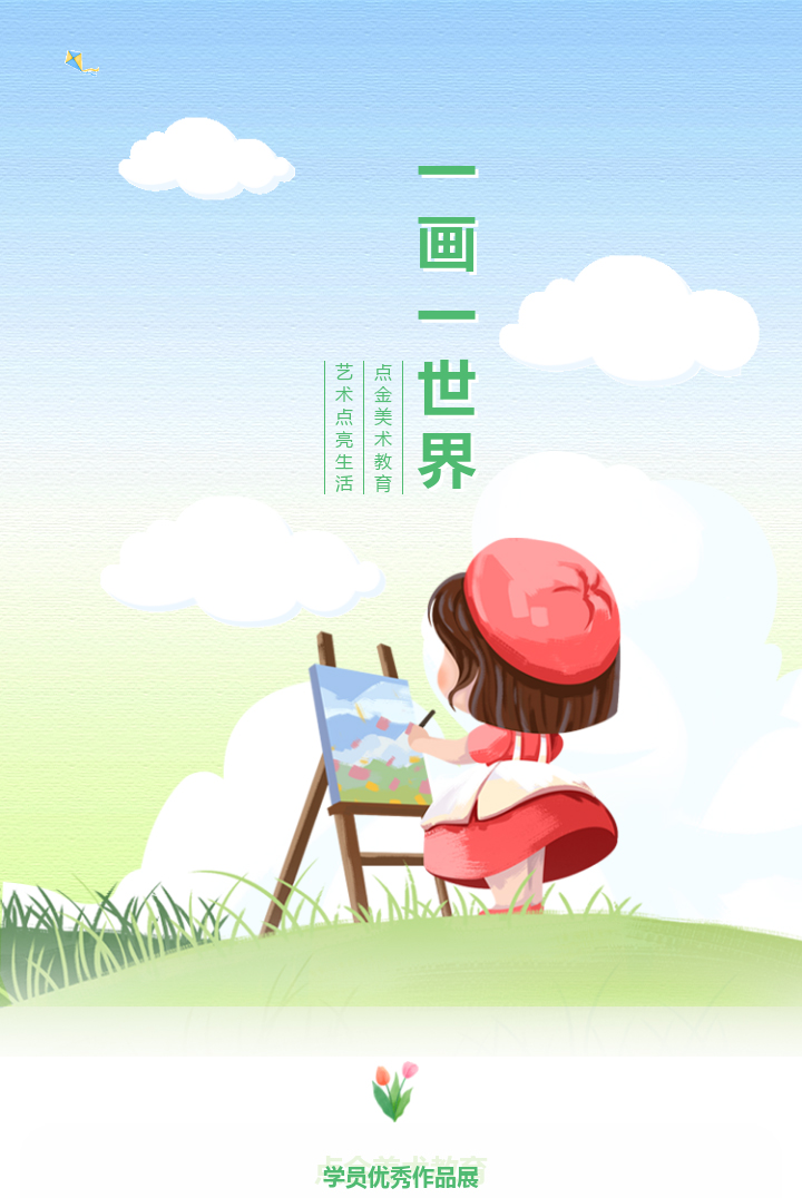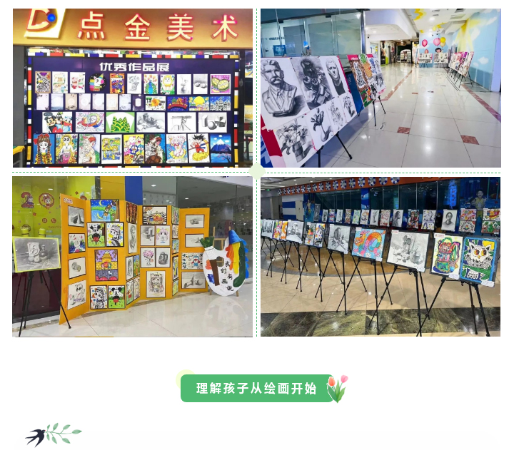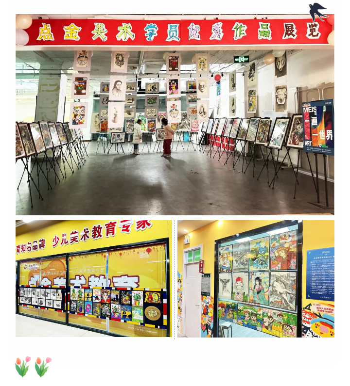 點(diǎn)金美術(shù)各個(gè)校區(qū)內(nèi)的畫(huà)展仍在進(jìn)行中,歡迎廣大愛(ài)好藝術(shù)的朋友到校參觀。在春天的美好景象里,萬(wàn)物皆可期,在孩子們展出的一幅幅畫(huà)中,爛漫世界里,萬(wàn)物皆可愛(ài)。