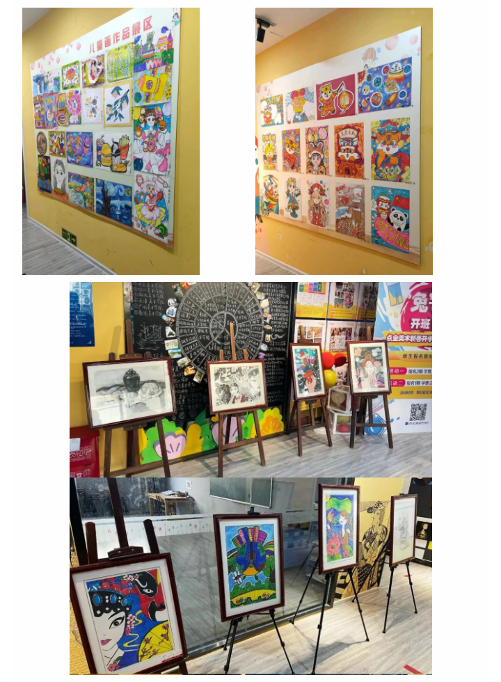 隨著春天的臨近,2023年的點(diǎn)金美術(shù)優(yōu)秀作品展也在各個(gè)校區(qū)內(nèi)如期展開(kāi)。多年來(lái),點(diǎn)金美術(shù)堅(jiān)持在校區(qū)內(nèi)部進(jìn)行優(yōu)秀作品展示,旨在通過(guò)展覽的方式,一方面為學(xué)員提供展示藝術(shù)作品的舞臺(tái),匯報(bào)階段性教學(xué)成果,另一方面幫助剛剛踏入點(diǎn)金大門(mén)的新學(xué)員更快地了解藝術(shù)世界,進(jìn)而更快、更好地進(jìn)入美術(shù)學(xué)習(xí)的最佳狀態(tài)。