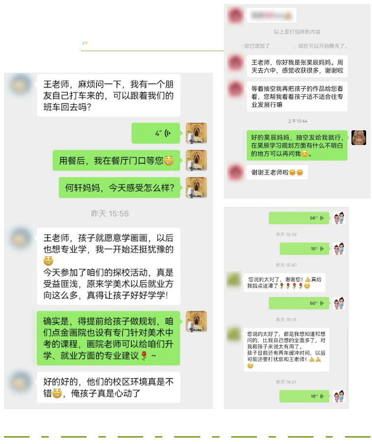 探?;顒?dòng)結(jié)束后,點(diǎn)金美術(shù)研究院副院長王群亮老師、點(diǎn)金畫院王憲宇老師向紛紛前來咨詢的學(xué)員家長,針對(duì)各學(xué)齡段學(xué)員的美術(shù)學(xué)習(xí)規(guī)劃進(jìn)行了指導(dǎo)和建議。家長們紛紛表示,通過本次活動(dòng)與聆聽青島六中校長及老師們的講座,以及點(diǎn)金美術(shù)領(lǐng)導(dǎo)老師的專業(yè)指導(dǎo),對(duì)青島六中有了更深入的了解,并對(duì)中考政策 以及孩子的美術(shù)學(xué)習(xí)情況形成更加明確的認(rèn)知,令孩子及家長在后續(xù)學(xué)習(xí)階段有了更清晰的努力方向,此行收獲滿滿。