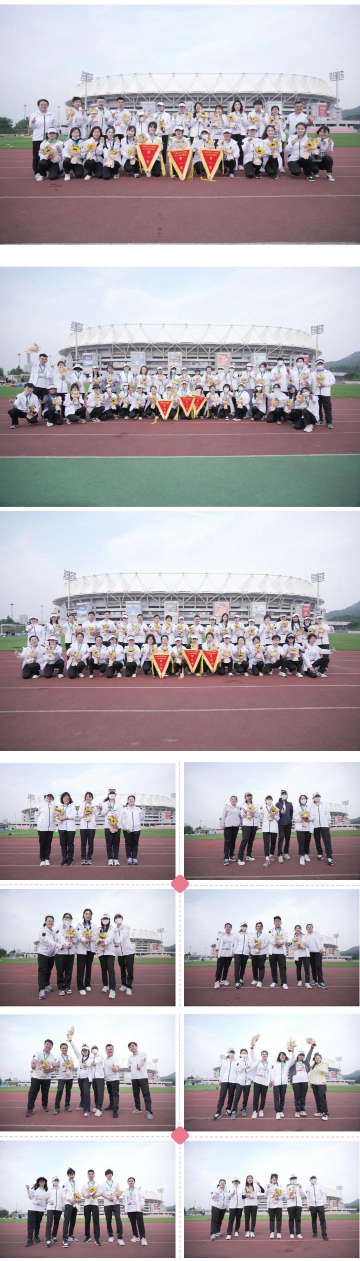 運(yùn)動(dòng)健兒激情飛揚(yáng)、努力拼搏,經(jīng)過一個(gè)下午激烈的比拼,以臺東、四方海云庵、四方杭州路校區(qū)組成的“錦鯉隊(duì)”獲得了團(tuán)體冠軍,校長侯魯峰、執(zhí)行校長徐靜對團(tuán)體賽冠軍頒發(fā)了獎(jiǎng)牌、鮮花及流動(dòng)紅旗,各校區(qū)、各部門負(fù)責(zé)人對個(gè)人賽冠、亞、季軍頒發(fā)了獎(jiǎng)牌、鮮花。在歡笑和掌聲中,本屆點(diǎn)金美術(shù)員工運(yùn)動(dòng)會(huì)圓滿結(jié)束,正如此次運(yùn)動(dòng)的主題——“To Be 嗨皮”,老師們將會(huì)把這種樂觀向上的精神帶到日常的工作中,健康運(yùn)動(dòng)、快樂工作、幸福生活。