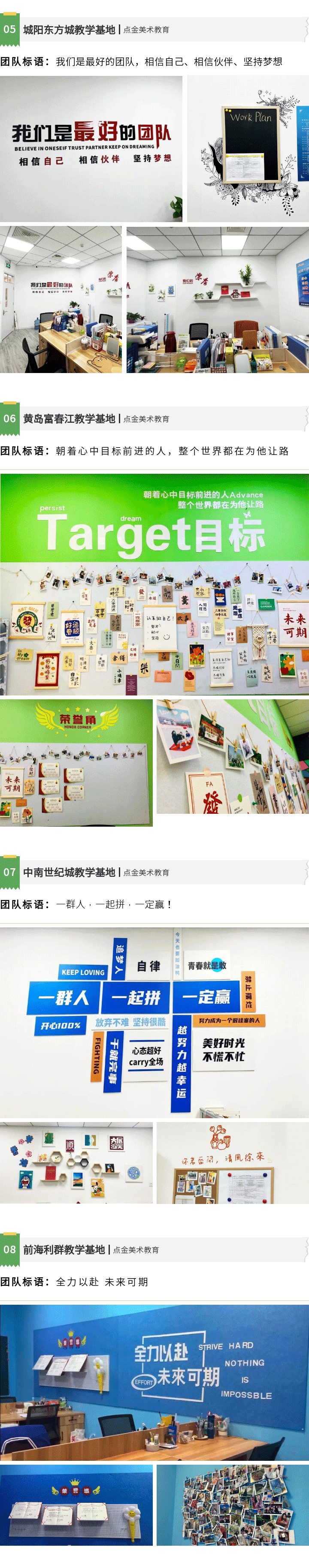 在祝賀各個(gè)獲獎(jiǎng)的教學(xué)基地的同時(shí),也讓我們走進(jìn)點(diǎn)金美術(shù)的教學(xué)基地,回顧部分校區(qū)老師們的辦公室文化設(shè)計(jì)成果。