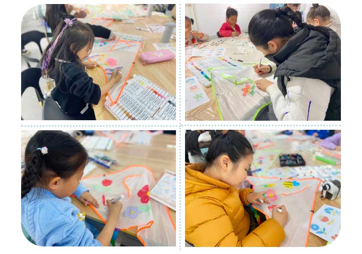 隨后,孩子們選擇自己喜歡的風(fēng)箏樣式,拿起畫筆,在老師們的指導(dǎo)下,充分發(fā)揮想象力,描繪出五彩風(fēng)箏,現(xiàn)場(chǎng)洋溢著自由創(chuàng)作的滿足感與幸福感。孩子們互相展示和分享作品及心得,與父母積極互動(dòng),度過了愉快的親子時(shí)光。