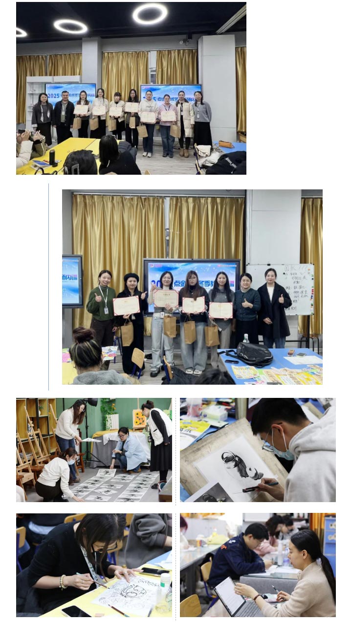 整個內(nèi)訓(xùn),各位骨干教師傾囊相授。板書培訓(xùn)力求讓每一塊板書都成為兼具實用性與美感的“微型美育作品”;素描提升培訓(xùn)則是現(xiàn)場進行技法拆解與示范;書法課程中興趣與實用性的巧妙結(jié)合;班級管理培訓(xùn)用一個個真實的案例進行兒童心理學(xué)分析... ...通過一系列生動的課程,全方位提升教師的專業(yè)功底。