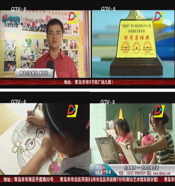 青島電視臺對點金美術(shù)教育優(yōu)秀的教學水平,先進的教學理念,系統(tǒng)完善的課程體系及取得的優(yōu)異成績進行了專題報道。