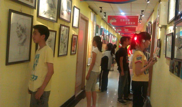本次展出作品為近期的教學(xué)和第十九屆世界和平書畫大賽的優(yōu)秀作品,誠(chéng)然,這構(gòu)圖,這線條,這造詣無法與經(jīng)典之作比擬。然而這些作品卻體現(xiàn)出來點(diǎn)金美術(shù)學(xué)員們?cè)谟^察,想象,探索,經(jīng)驗(yàn),互動(dòng),表達(dá),合作,分享上發(fā)展的基本狀況,通過本次展覽的作品讓我們感覺到了在“藝術(shù)點(diǎn)亮生活”的理念中,藝術(shù)在描繪著這些孩子們的美好人生。