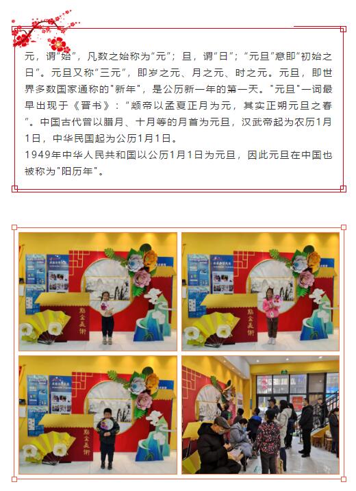 迎著新年的曙光,帶著真誠的祝福,為了豐富同學(xué)們的學(xué)習(xí)生活,提高同學(xué)們的活動能力,活躍學(xué)習(xí)氛圍,點(diǎn)金美術(shù)新都心校區(qū)任課老師積極準(zhǔn)備,精心制作課件,準(zhǔn)備了豐富的教學(xué)內(nèi)容和“游園”主題展板,以不同的形式對傳統(tǒng)節(jié)日進(jìn)行詮釋、探討和思考延伸。