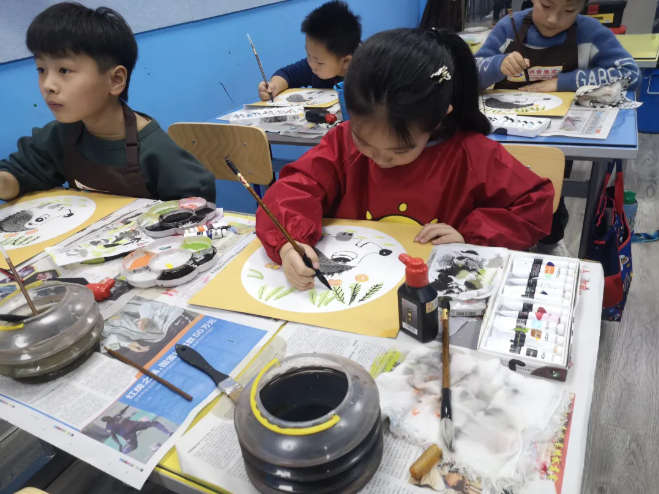 通過使用傳統(tǒng)的水墨工具,使孩子們學習到一種全新的繪畫語言。國畫的繪畫技法跟其他繪畫科目不同,使用毛筆和墨汁更需要投入極大的耐心和嚴謹?shù)膶W習態(tài)度,畫錯不可更改。