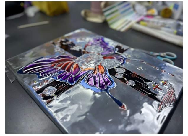 錫紙畫不僅是美術色構中的肌理畫的一種演變,更是一種具有獨特美感的藝術形式。這次主題課旨在讓學員們深入體驗肌理畫的同時,積累各種繪畫構圖的知識,培養(yǎng)他們對畫面構圖的敏感度,并提升對色彩的感知力。