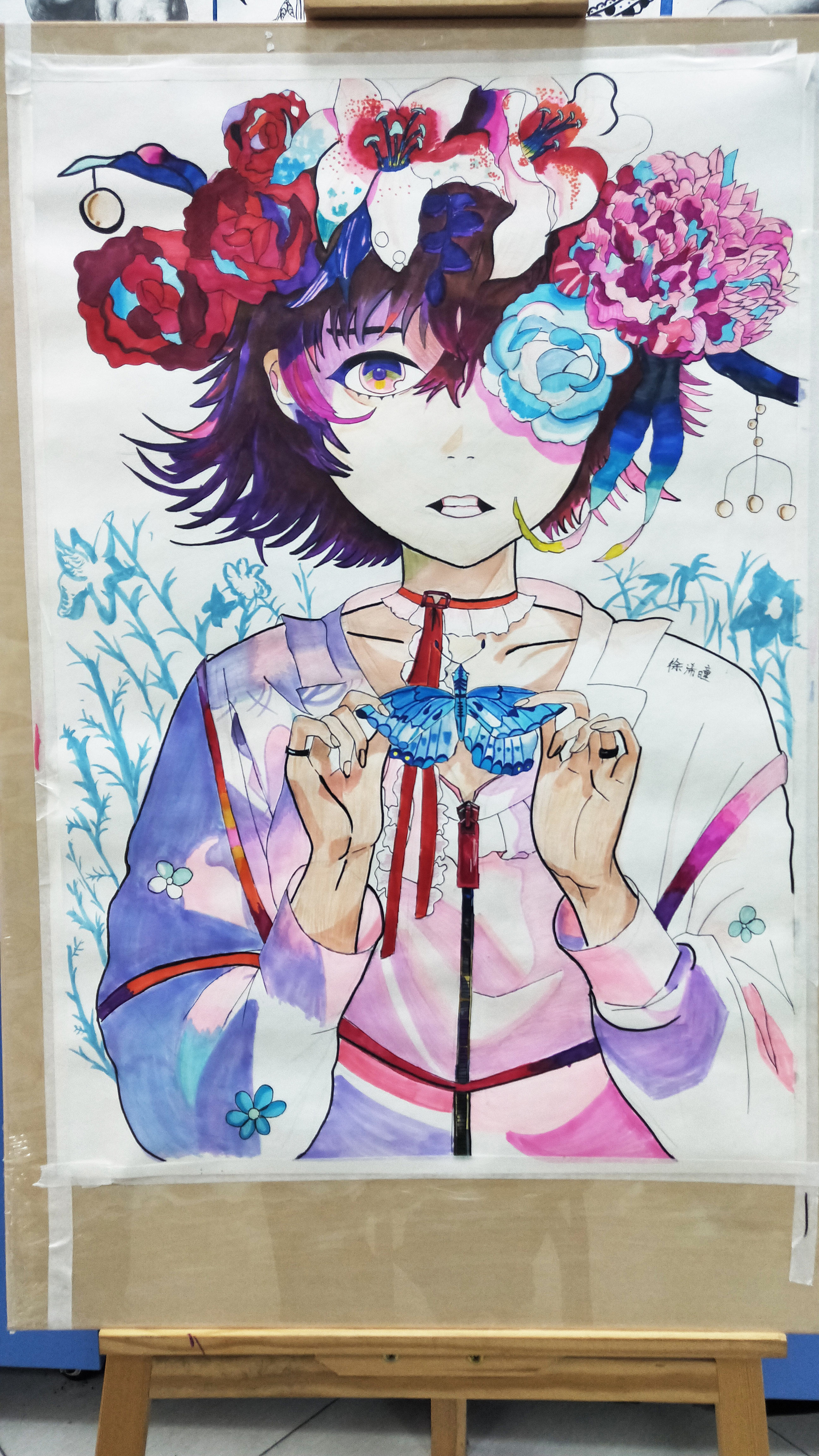 四方杭州路校區(qū)本次動漫作品,均為2開,雖然這些學(xué)員們均有素描繪畫經(jīng)驗,但大幅的畫面更加考驗學(xué)員的造型能力以及構(gòu)圖能力,在視覺感官上也讓人覺得更為震撼。