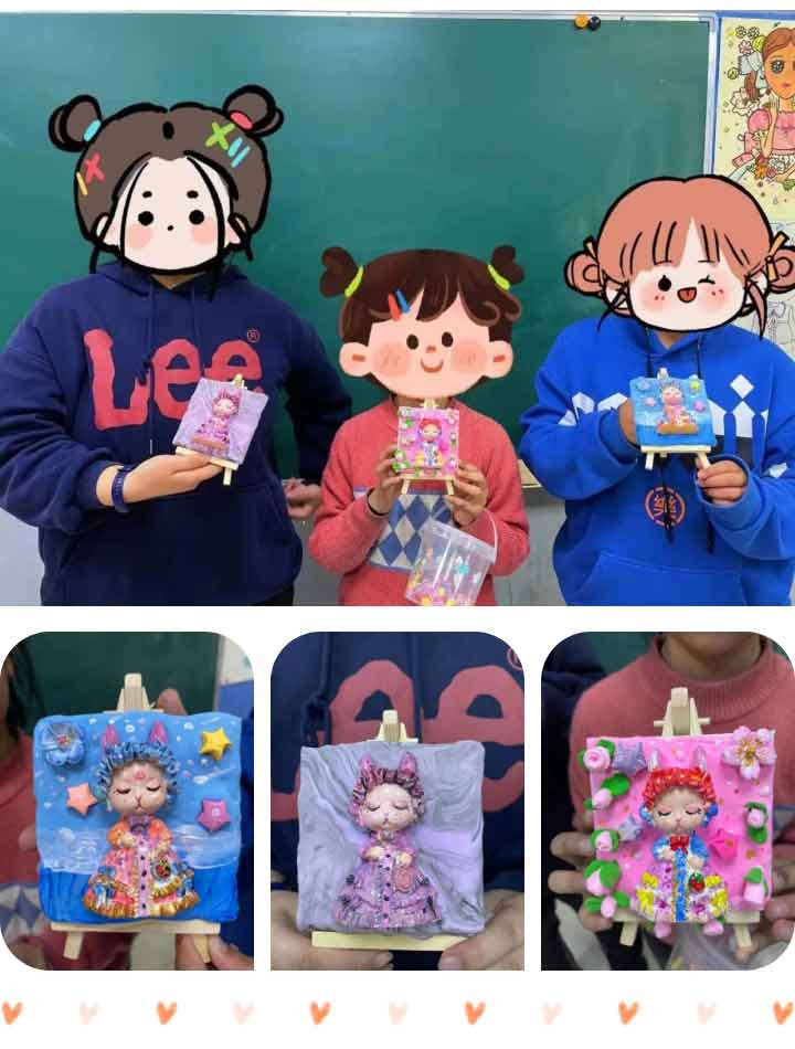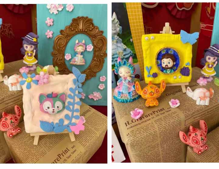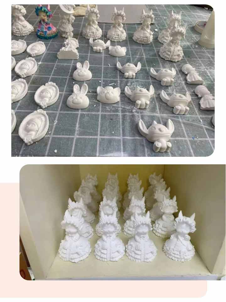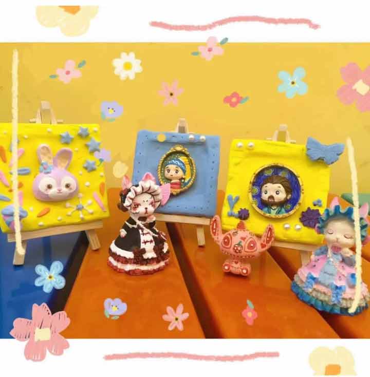 課程中所用的石膏娃娃都是老師們親手制成的,結(jié)合日常課后對學(xué)員們的了解,選擇了很多孩子們喜歡的主題和人物,從攪拌石膏倒模翻模,只為了學(xué)員們課堂中可以呈現(xiàn)出好的作品。