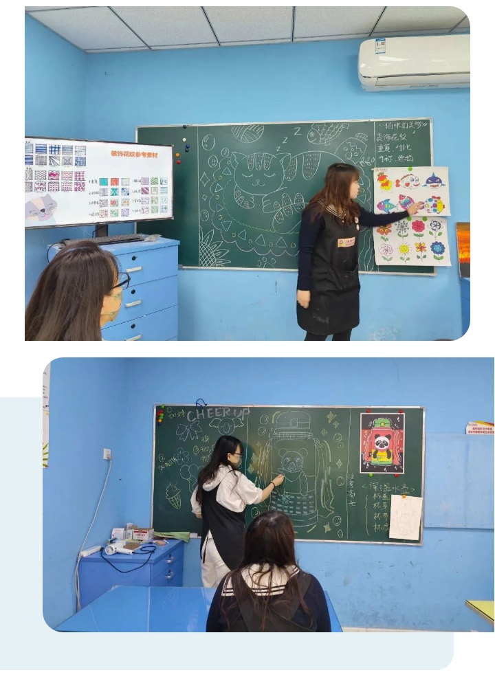 針對板書主題,老師們進行現(xiàn)場的演練,在演練結(jié)束后互相點評,取長補短,并收集更多的素材,幫助學員們豐富作品內(nèi)容,打開他們的思路,開闊他們的眼界。