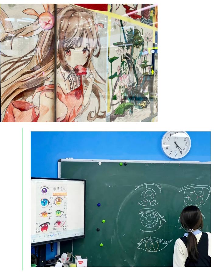 老師們提前調(diào)研,結(jié)合流行元素,設(shè)計(jì)了動(dòng)漫咕卡課程,使動(dòng)漫與咕卡相結(jié)合,寓教于樂(lè),既提高了學(xué)員的動(dòng)手能力,又拓寬了學(xué)員的色彩表現(xiàn)力,讓學(xué)員體驗(yàn)不一樣的動(dòng)漫課程。