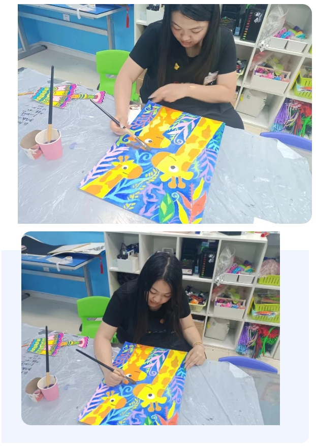 面對(duì)美育教育工作,老師們從不馬虎,在繪畫(huà)的過(guò)程中,老師們互評(píng)、互助,并將完成的范畫(huà)上傳至點(diǎn)金教研室進(jìn)行審核后進(jìn)行再次修改,讓畫(huà)面呈現(xiàn)出好的效果。