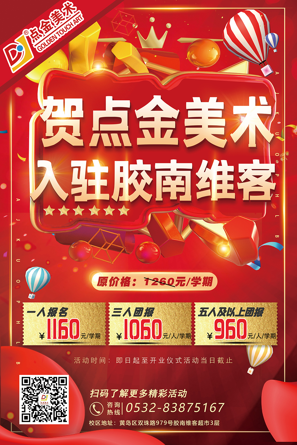 目前,新校優(yōu)惠活動(dòng)已正式啟動(dòng),歡迎同學(xué)們、家長們積極參與,親身體驗(yàn)點(diǎn)金美術(shù)專業(yè)且優(yōu)質(zhì)的美術(shù)教育。
