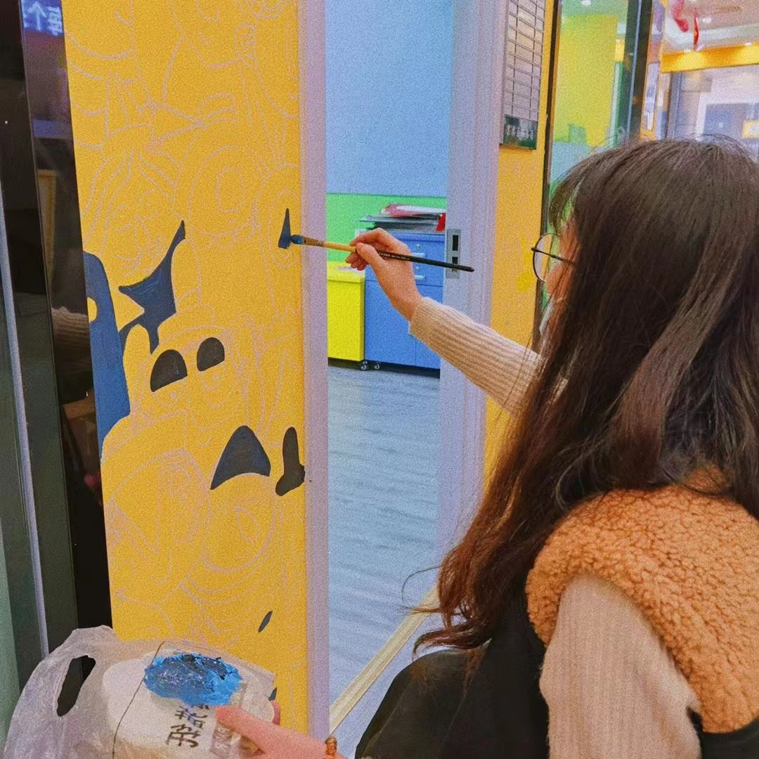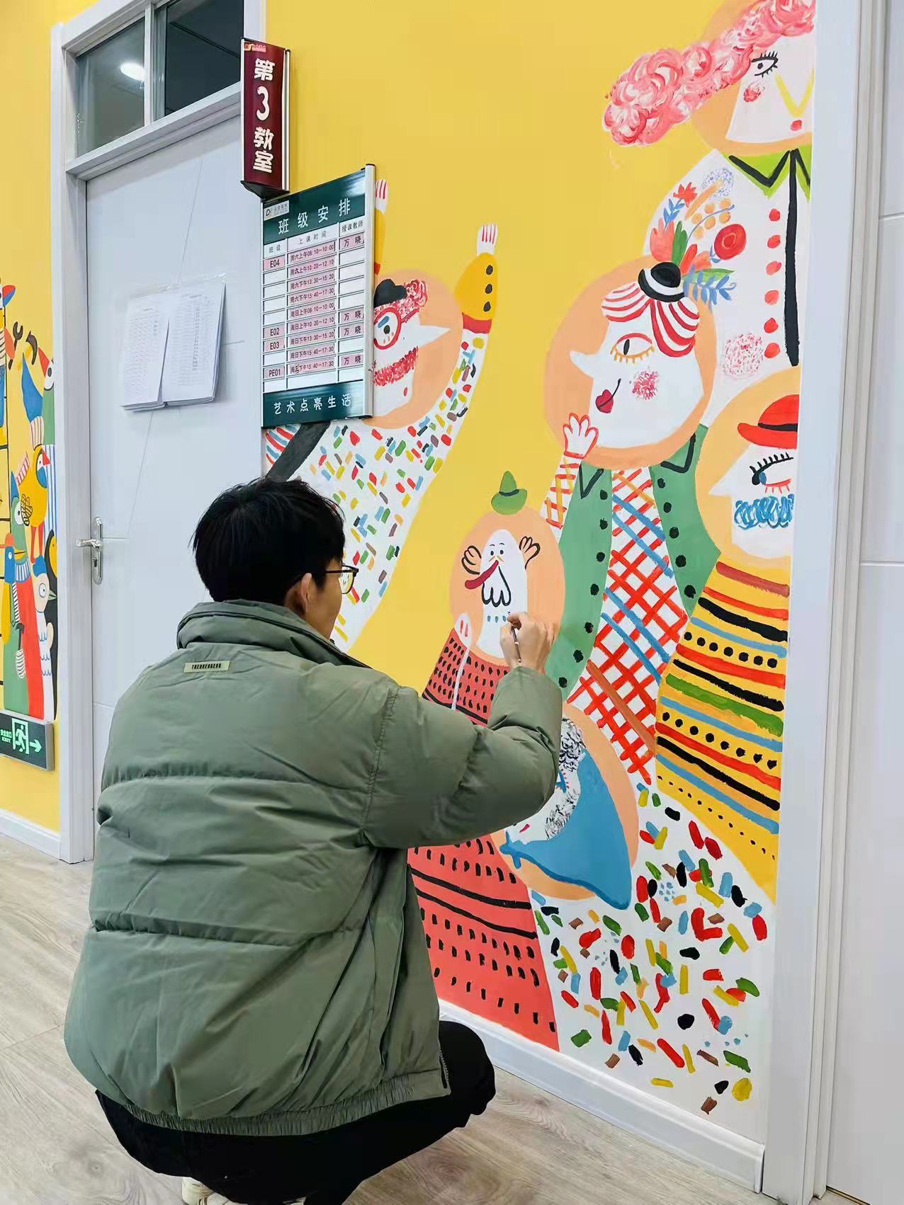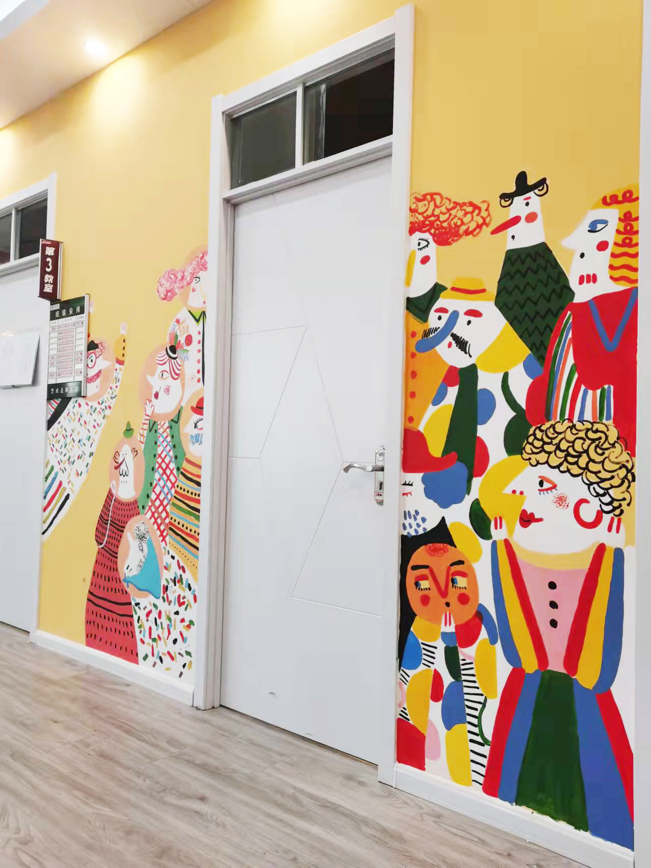 為了提升校區(qū)環(huán)境氛圍,嶗山大拇指校區(qū)的老師們在年前充分利用前廳和走廊空間,以簡潔明快的大色塊為主色系,生動趣味的繪畫內(nèi)容讓學(xué)員們切身感受校區(qū)濃厚的繪畫氛圍,在校區(qū)中藝術(shù)之美隨處可見。