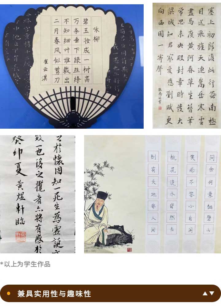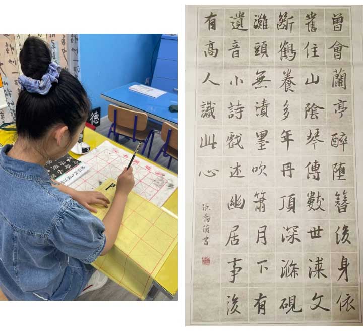 點(diǎn)金美術(shù)遵循“環(huán)境育人”的理念,孩子所在的書(shū)法教室具有濃厚的文化氛圍,各種書(shū)法主題課程中與中華傳統(tǒng)工藝品相結(jié)合,兼具傳統(tǒng)美學(xué)。