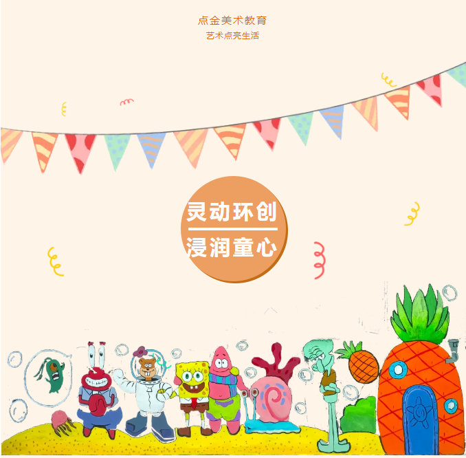 部分主題以學(xué)員們喜愛的動畫片“海綿寶寶”為主題,黃色的海綿寶寶、紅色的蟹老板、粉色的派大星...從開始的選材到后來的創(chuàng)作,老師們都精心準(zhǔn)備著。