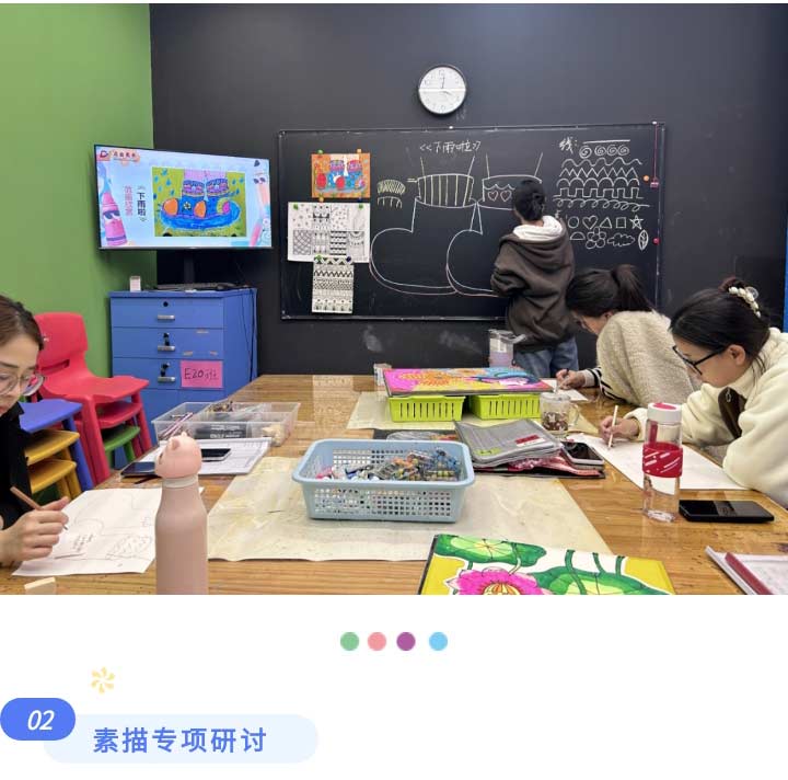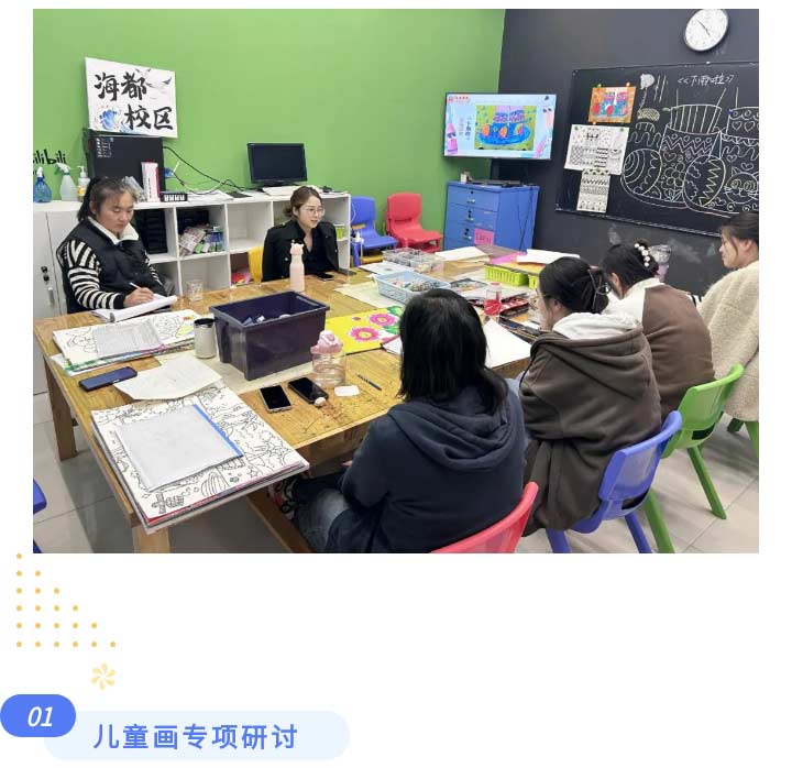 對于兒童畫班級,老師們分享備課的細(xì)節(jié),探究在課堂上如何創(chuàng)新性引導(dǎo),提升學(xué)員的學(xué)習(xí)興趣。
