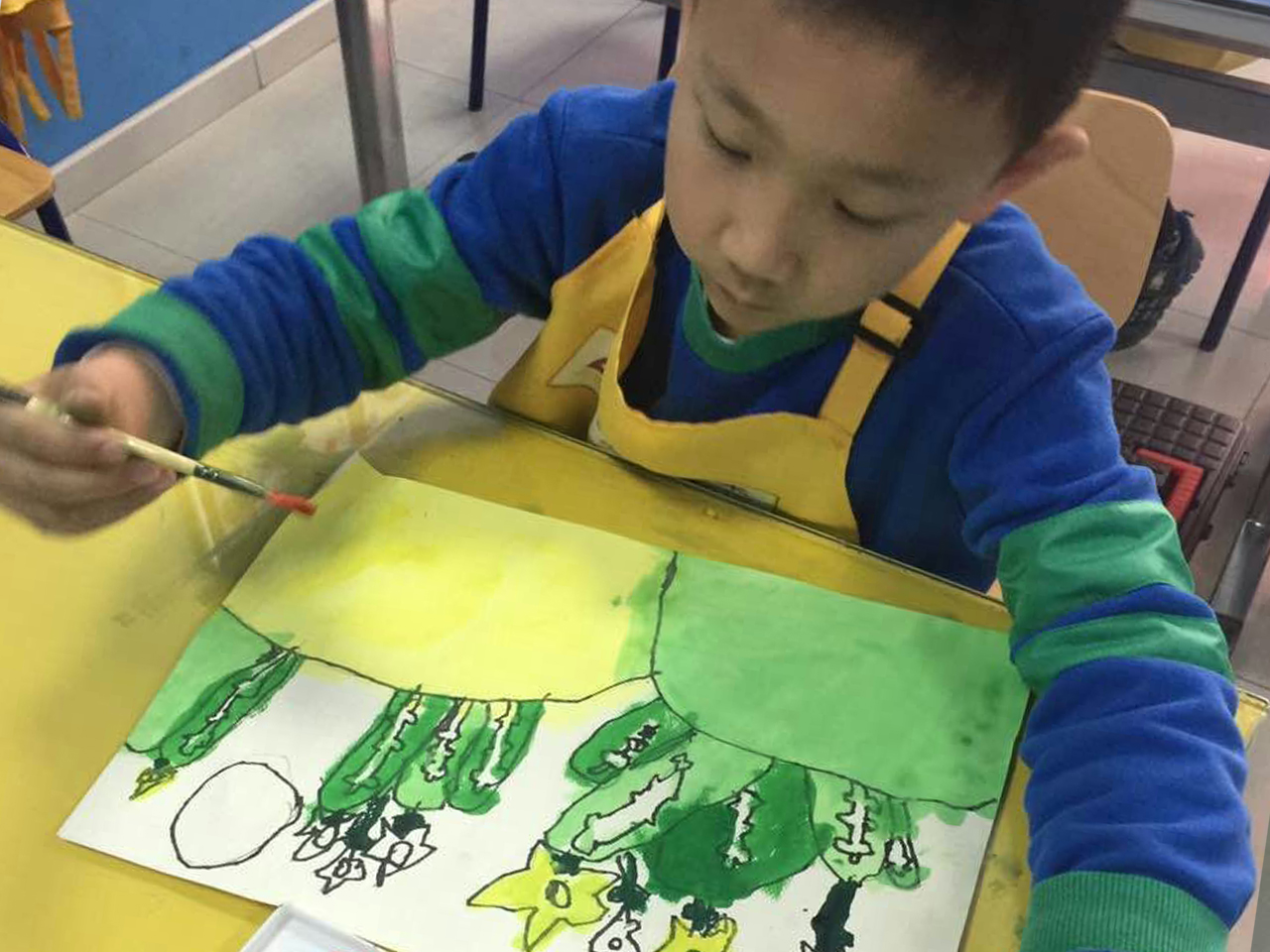 兒童畫1班是基地建立的第一個教學班級,不知不覺間,一班的小學員們現(xiàn)已進入到新的美術繪畫技術領域——水粉課程的學習階段。兒童畫1班在讀學員12人,年齡在5-7歲之間。
