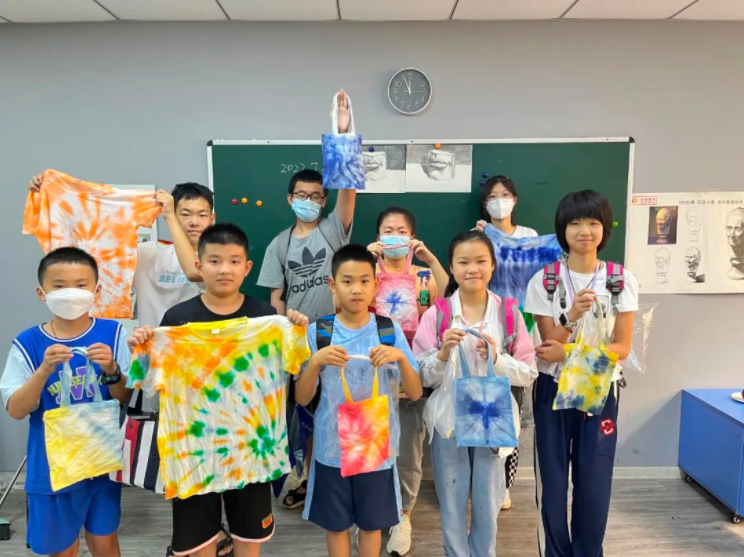 臺(tái)東校區(qū)老師們?cè)谑罴贋閷W(xué)員們安排了有趣的扎染課程。傳統(tǒng)與現(xiàn)代,藝術(shù)與文化,不經(jīng)意的碰撞,在白布上渲染出了獨(dú)屬于每個(gè)同學(xué)自己的的色彩,這是扎染的魅力,更是一件獨(dú)一無(wú)二的藝術(shù)品。