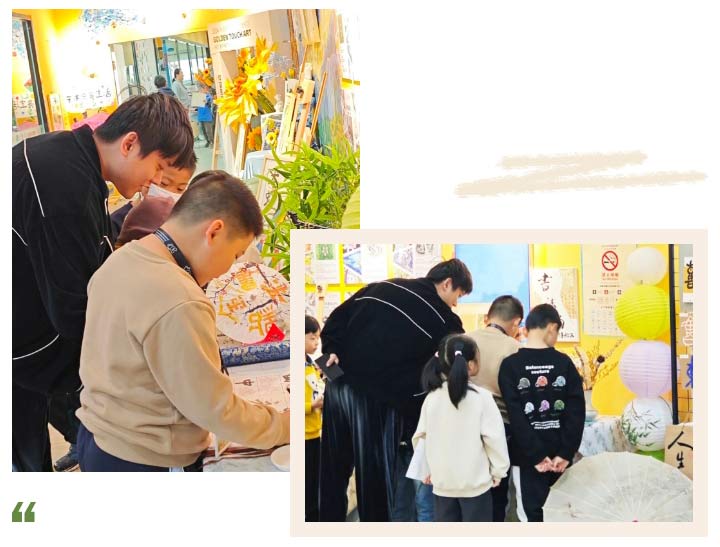 在孩子們自由體驗期間,校區(qū)的書法老師也會在課余時間對孩子們進(jìn)行輔導(dǎo),糾正他們的握筆姿勢和書寫方式,在不經(jīng)意間提升學(xué)員的書寫技能,更讓他們更好的感受優(yōu)秀中華傳統(tǒng)文化。