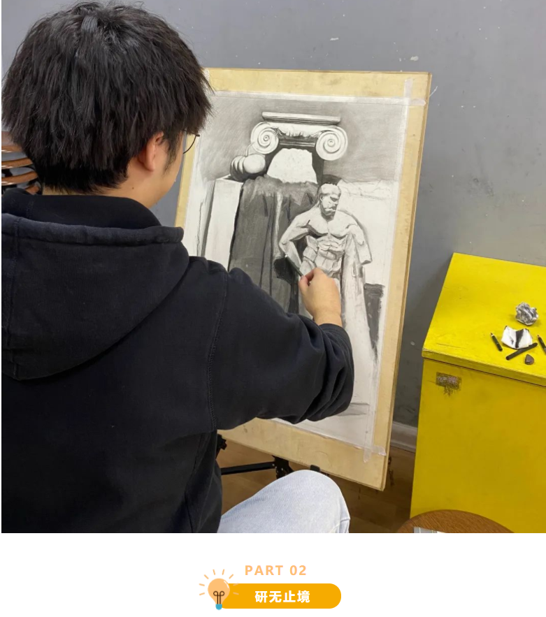 素描的老師們通過(guò)大畫(huà)的繪制,來(lái)發(fā)現(xiàn)各個(gè)老師畫(huà)面中的優(yōu)缺點(diǎn),在繪畫(huà)的過(guò)程中不斷地探討學(xué)習(xí),并且在其他老師的建議中完善自己的畫(huà)面,也能側(cè)面學(xué)習(xí)到其他老師對(duì)于畫(huà)面把控中的閃光點(diǎn),最終運(yùn)用到自己的學(xué)員身上,來(lái)提高素描技巧的教學(xué)能力。