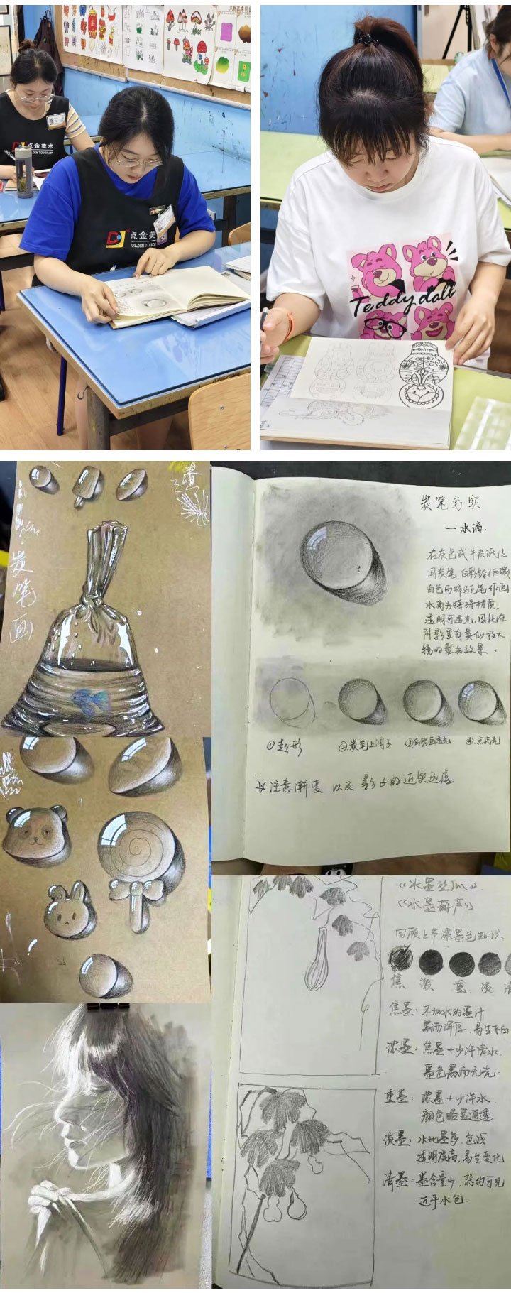 暑假是小學(xué)員們上課的“高峰期”,在這期間孩子們通過(guò)特色課程、考級(jí)提升著繪畫(huà)技能和審美能力,而這段時(shí)間也是老師們積累教學(xué)經(jīng)驗(yàn)的寶貴時(shí)期。在暑期中,點(diǎn)金美術(shù)各個(gè)校區(qū)的教育教研工作依舊在進(jìn)行。