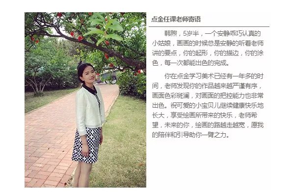 她現(xiàn)在已經(jīng)對(duì)畫畫產(chǎn)生了濃厚的興趣,通過(guò)1年多對(duì)畫畫的學(xué)習(xí),培養(yǎng)了孩子自己豐富的想象力和較好的耐性,現(xiàn)在每天發(fā)現(xiàn)的美好事物都能夠通過(guò)畫畫保存下美好的記憶,畫畫的小冊(cè)子已經(jīng)有10余本了。