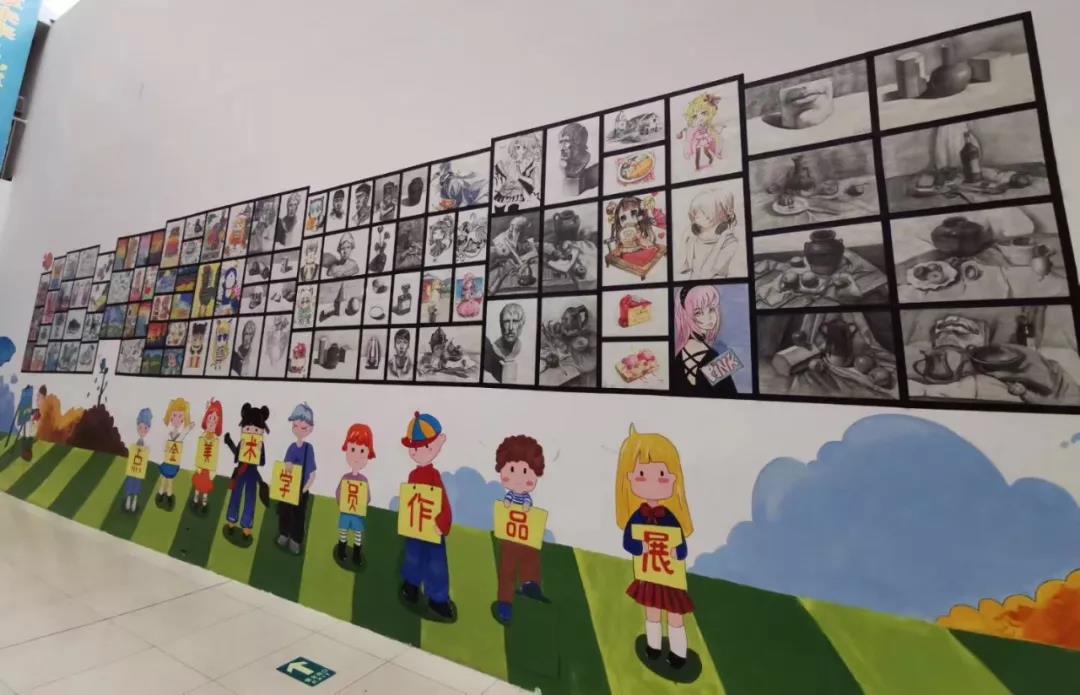 近日,點(diǎn)金美術(shù)浮山教學(xué)基地的全體老師發(fā)揮自身長處,協(xié)調(diào)教學(xué)基地所屬物業(yè),利用校區(qū)周邊空墻,為學(xué)員們搭建、繪制了展示自我、彰顯校區(qū)藝術(shù)文化氛圍的學(xué)員作品畫展墻。